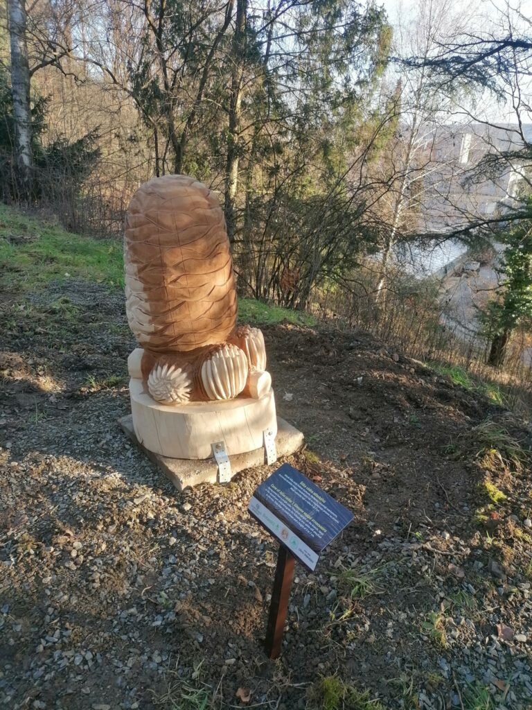 Na dendrologickom náučnom chodníku tak záujemcovia uvidia aj z dreva vyrezané podoby šišiek, semien či plodov sekvojovca mamutieho, cédra atlaského, ginka dvojlaločného, moruše bielej, lipy veľkolistej a orecha kráľovského.